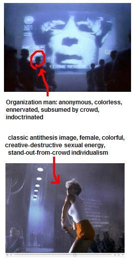 Let's start by reviewing the cultural impact of the original. The best-known artifact of course, is Apple's famous 1984 commercial (YouTube video here), which owes as much to Whyte as to Orwell for its arresting imagery.