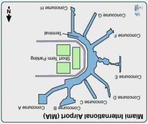 But you don't have to go to Nebraska to appreciate the workings of the Ancient Hand. Next time you're on a plane, pick up your in-flight magazine, skip to the end, and ponder the airport terminal layout drawings. It helps to turn the magazine upside down. Here's one of my favorites, Miami International Airport. Turned upside down so you aren't distracted by the words.