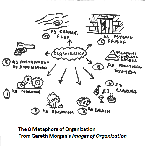 - Organization as Political System: Most of the Gervais Principle series falls within the boundaries of this metaphor, though I sometimes step out to the Psychic Prison metaphor.
