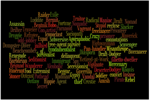 It's somewhat strange that two of the most obvious examples of peripheral figures which form the center are missing in the Outlaw map: the criminal and the terrorist. They are among the most aggressive vectors which challenge or directly attack the center, while the center responds in the way of creating a police state which yields yet another peripheral figure, which is also missing: the dissident.