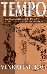 Davison Avery from Toronto has been reading the site from the beginning. We've met once, and have been exchanging emails on subjects ranging from container shipping to the future of telecom for more than two years now. He's usually the first person I ask whenever I need feedback about something, since I can rely on him to always be honest and blunt, but supportive at the same time. I think of him as a bit of a Godfather to this blog (in both Mafia and regular senses of the word). He doesn't comment often (sorry man, but I had to put the spotlight on you sometime; good deeds cannot go unpunished), but the email back-channel we've had going for these last few years is easily one of the top 5 motivators that keeps this blog going. He's been one of the beta testers of the book from the beginning, so I asked him for a comment. Here it is:Information advantage lets you seize important, yet fleeting opportunities. Occasionally, you find a gem of wisdom and piercing insight that endures -- if you know how to use it well. Venkatesh Rao's Tempo is one such treasure: ignore this book at your own peril.