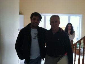 One of the folks I met in Montreal, Tibi (short for Tiberius; that's a pretty impressive name) rode along with me to a village in the Laurentian mountains north of the city, Val David. At the village, I briefly toured Chaumiere Fleur Soleil, a retreat/teaching center founded by Jacques, a former RCMP instructor. Here are Tibi and Jacques.
