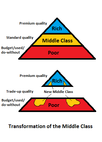 There's a pretty neat book about it, Trading Up by Michael Silverstein and Neil Fiske, which you should read if you, like me, have exited or are planning to exit the traditional middle class.