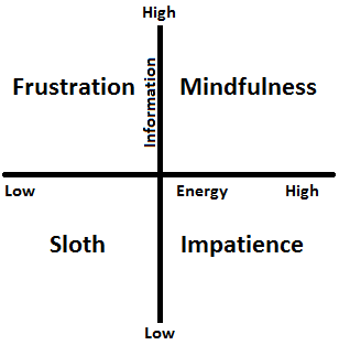 Mindfulness is when energy and information dance together well. Note that you don't necessarily have to keep them balanced at a specific moment. You can store both. So you might wait for energy to catch up with information, or vice-versa. Or you can accumulate both and unleash a ferocious burst of mindful action driven by a store of heavily-informed energy.