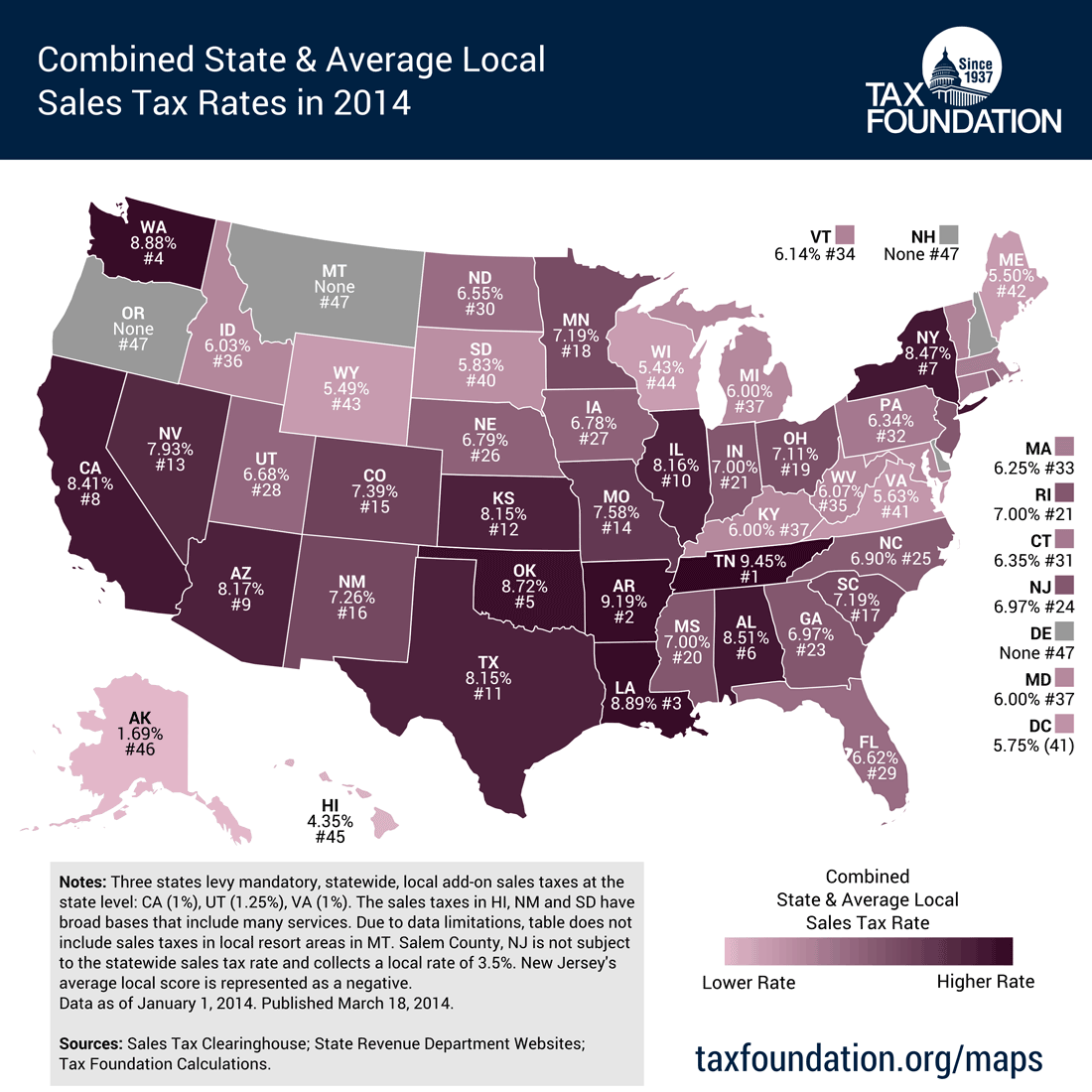 Figure 6: Sales Taxes by State (Image source: taxfoundation.org)