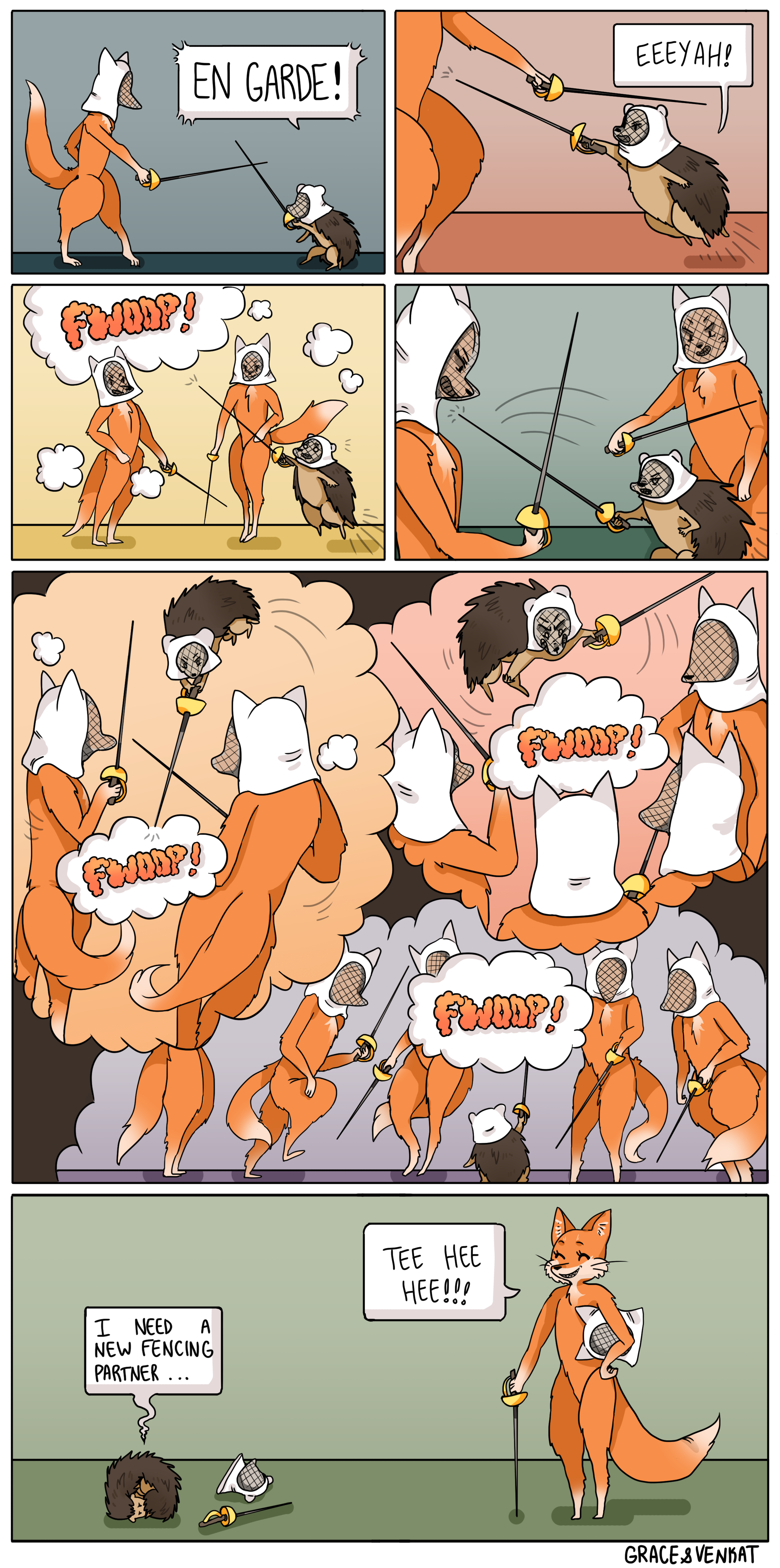 Also, while I am Fox 24/7 all-day, every-day -- the Hedgehog should have been the better fencer. But incapable of attacking like described above.