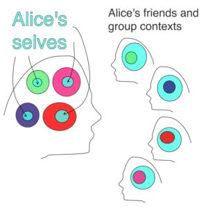 So far, we are looking at very contingent and ephemeral social situations. A recent analysis of dreaming suggests something about ongoing relations with people we see repeatedly, and it speaks explicitly of avatars.One of the most common theories about dreaming held by researchers is that it is necessary for turning the ephemeral memories of a day into permanent memories. What are memories like? A naive idea might be they are like stored film clips. The beginning of this paper dealt with a kind of memory, of who Jennifer Aniston is and what she looks like, which is more like a concept. Another sort of memory is what that valley, or the top of that hill, or the first home that you remember is like. Turning the film clips of the day into idea-like memories, or assimilating them to existing memories would seem to require a lot of processing, perhaps with a good bit of parallelism, probably best done when the brain is “off line”, and the idea that dreams are a by-product of such a process makes intuitive sense, and might shed light on the chaotic nature of many dreams.