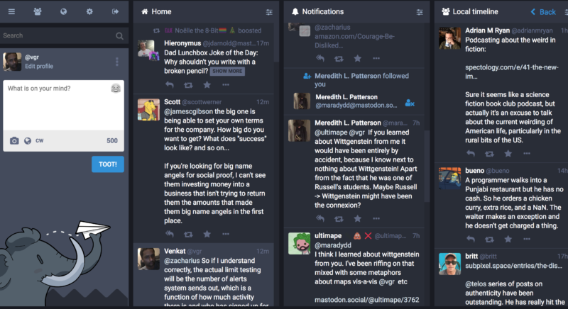 The interface and baseline mechanics of the user experience are deceptively similar to Twitter. At first, the differences seem insignificant:- Toots (the analog of tweets) can be up to 500 characters, can feature content warnings, and have controllable visibility so they can be global, local, or personal (like DMs).