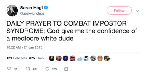 There is a whole serialized intersectional matrix of identities queued up right behind Mediocre White Guy, each awaiting their turn. From Cis-White-Woman (marvelous mediocre goddesses with names like Permit Patty and Barbecue Betty) all the way down to trans-black-Syrian-refugee-woman-with cancer from Mexico.