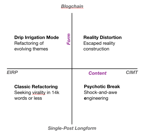Here's a handy 2x2 to help you understand what you're reading, and how to write if you're contributing.