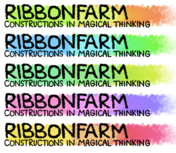 If you're one of those sharp-eyed readers who notices such things, you may have noticed that earlier this week, we adopted a new tagline: constructions in magical thinking. We also got a cheery set of new mastheads to go with it (thanks Grace Witherell), which you'll see in rotation at the top of the site from now on.